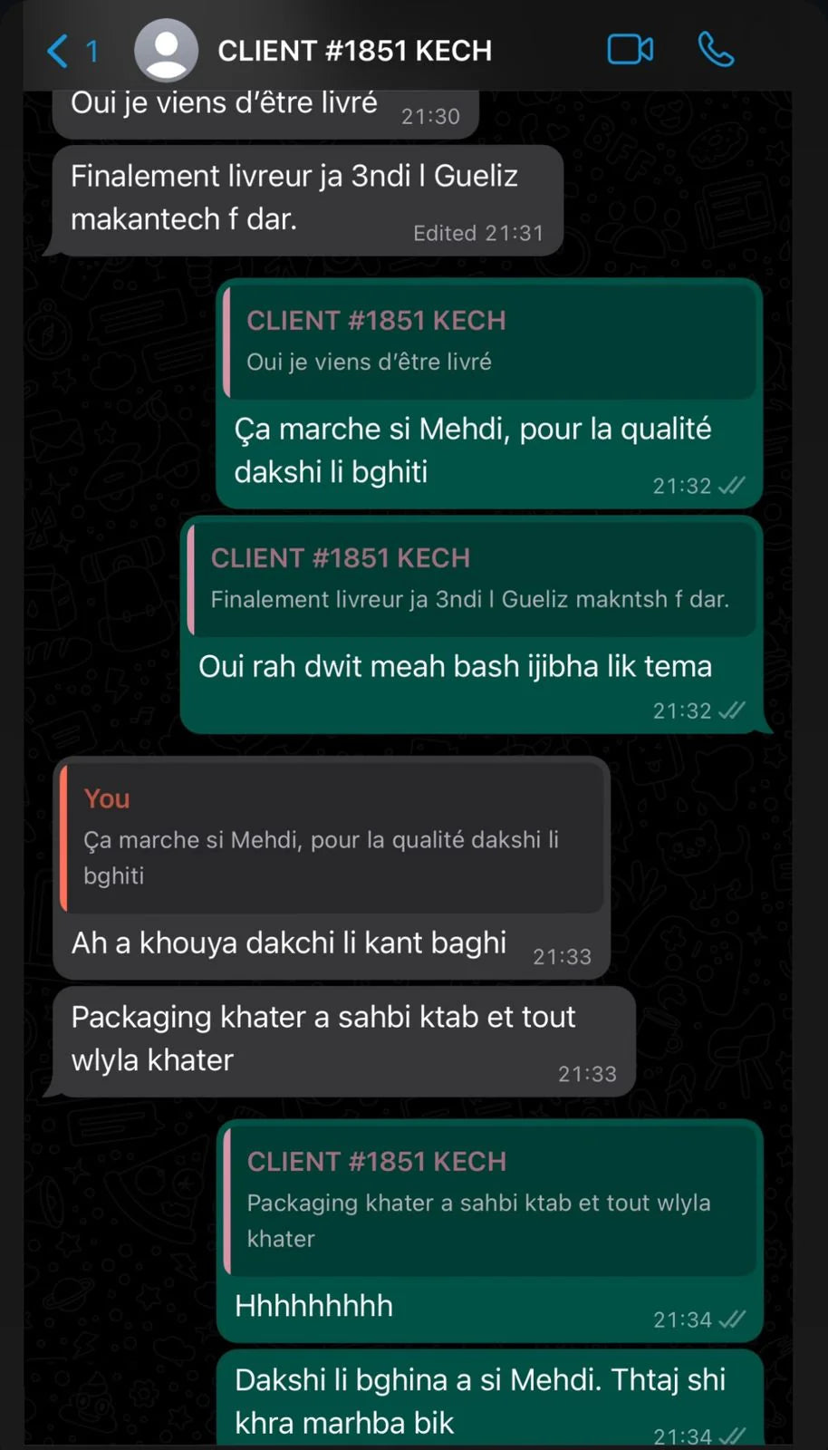 Le paiement s'effectue en espèces à la livraison