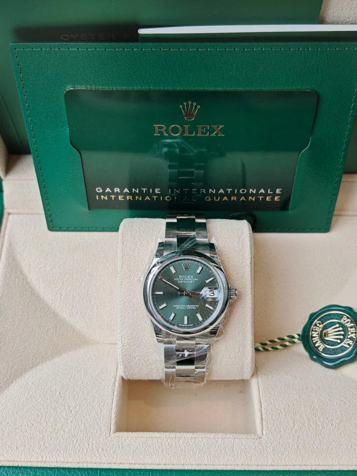 ♦ Rolex Datejust 36mm Green Background Automatic Oyster For Women 31mm